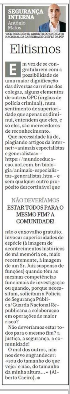 Segurança Interna - artigo do dia 25 de setembro de 2021: Elitismos.